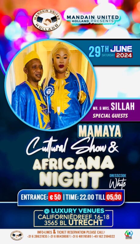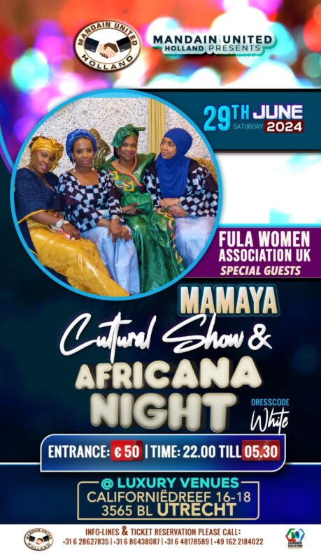 27 May Events Mandain Utd Holland 🇳🇱 Mamaya Cultural Show and Africana Night May 27, 2024 By mandaing 0 comments Mandain Utd Holland 🇳🇱 Mamaya Cultural Show and Africana Night 29th June 2024 in UTRECHT, Special Guests From London our Mandingo Membe...Continue reading